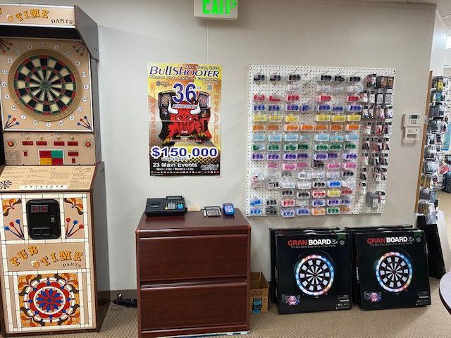 Just Darts invites you to visit our Dart Pro Shop Mon. through Fri., however, we are in & out of our office a lot, so please call us at 317-576-8009, press 1 for service, leave us a message with your name and phone number so we can call you to schedule your visit.